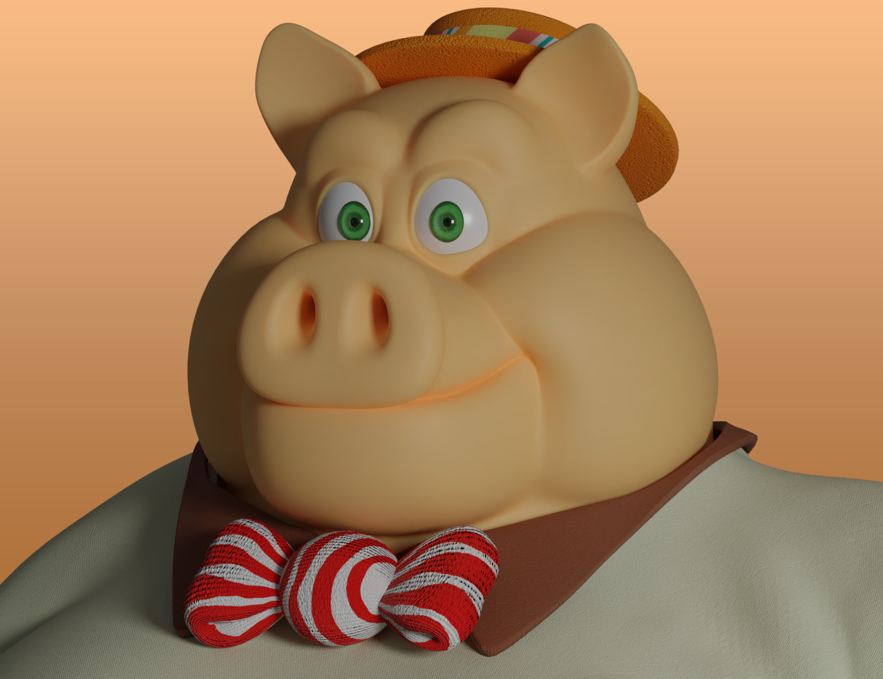 Cerdo cartoon con temática de golosinas. Hecho usando Blender.